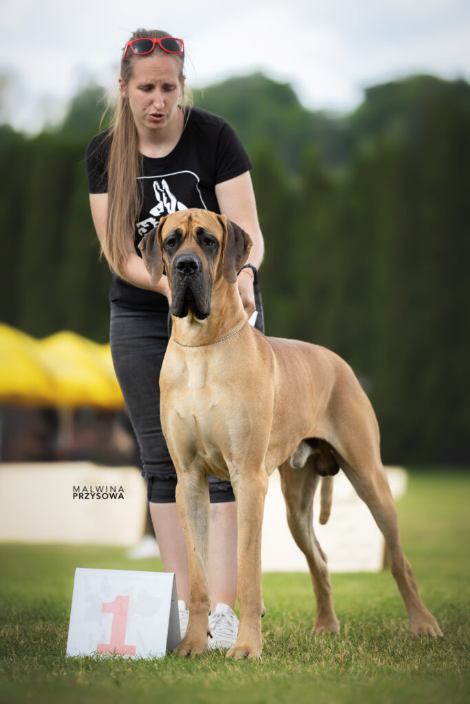II Klubowa Vystava Nemecych Dog 2023 bez tytułu KV in Czech Republik. 18.06.202303.05.2024 ROZMARYN z Kuźni Napoleońskiej18.06.2023Sędzia: Jose Garcia Abad (E)Klasa pośrednia:I Doskonały, CAC 23 miesiące 23 miesiące
