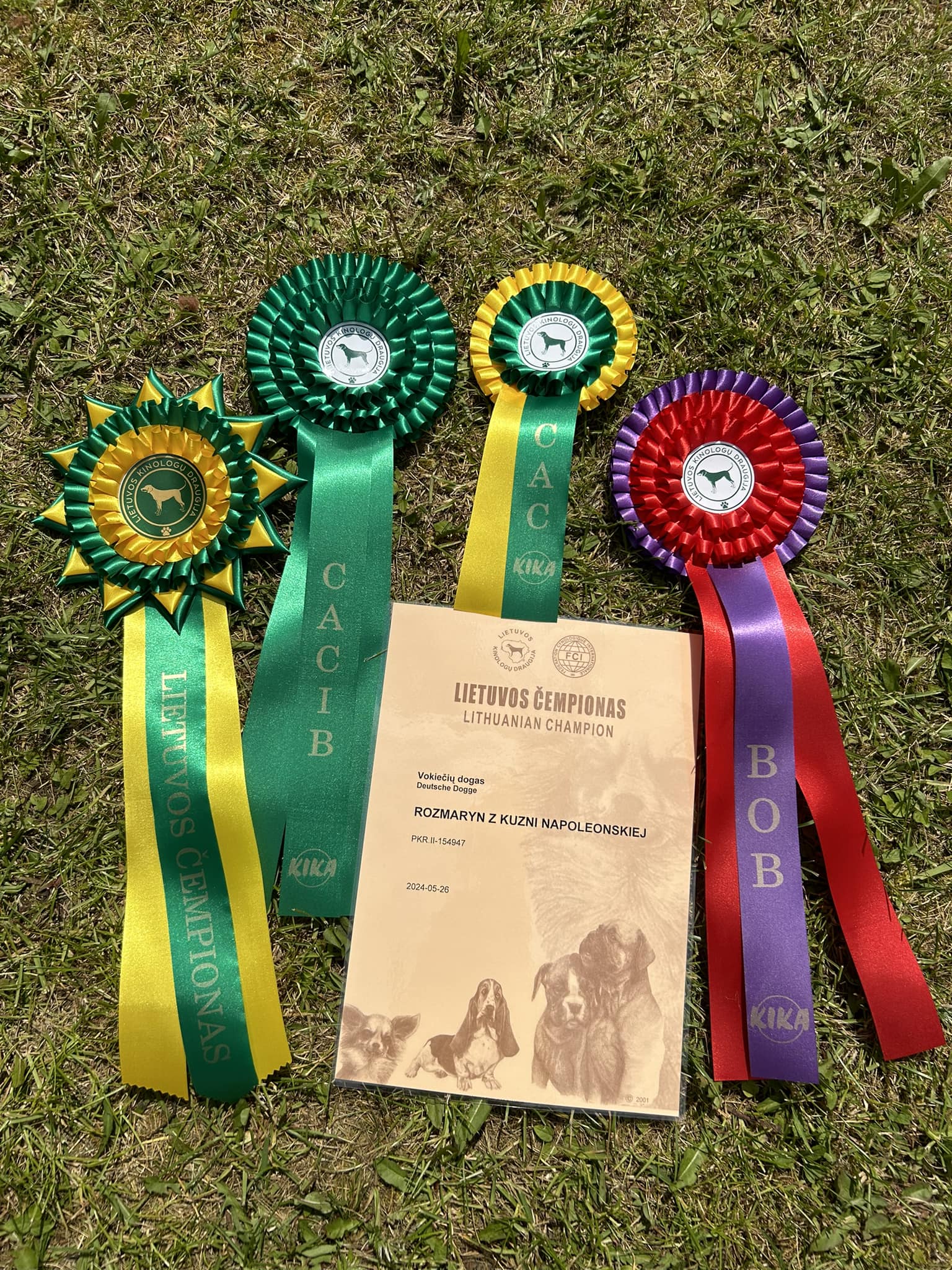 Internacional Dog Shows Aukstaitija Litwa 26.05.202406.06.2024 ROZMARYN z Kuźni NapoleońskiejSędzia: Andre van den Broek (Nethelands)Klasa otwarta: I Doskonały, LT CAC, CACIB, BOB,PARODOS NUGALETOJOS SHOW Winner